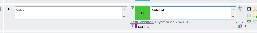 Clicking the restore last version button (circled) pastes the previous