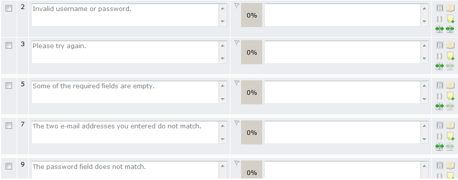 The translation status for a segment is affected when it is split or merged. If you split a segment, the status reverts to no status. However, when you merge two segments, the status may change. For translation status, if at least one segment has translated data (regardless of whether the status is Manual, ICE, 100%, and so forth) the resulting segment is marked Manual Translation and the review status is set to None. (Depending on how your workflow steps are configured, the review status could be set to Pending Review.) If the new segment is untranslated, the review status is set to None.