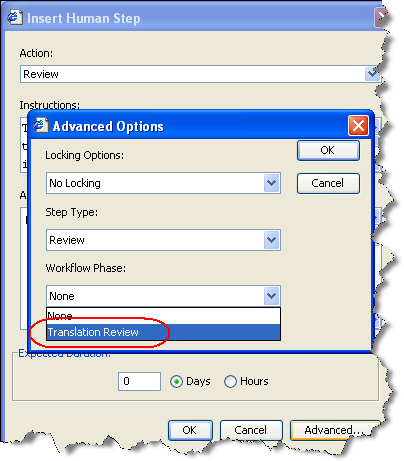The string "Translation Review" that appears here as a workflow phase was configured on the page.