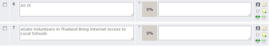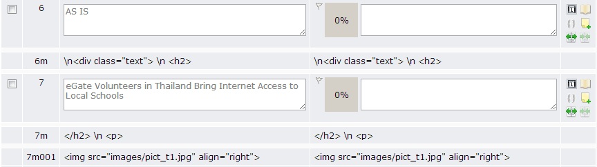 An asset or task is made up of segments with translatable text, and attributes and segments with non-translatable markup. Selecting the Show Markup check box allows you to see the segments with non-translatable markup as well as those with translatable text and attributes. You cannot edit markup segments.